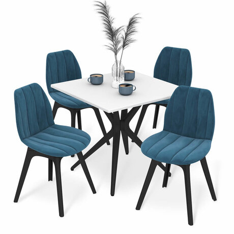 Набор из четырех стульев и стола SHT-DS321 сине-белого цвета